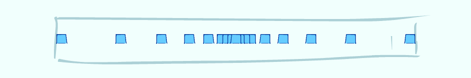 Het eerste en laatste blokje moeten blijven staan. We gaan het in javascript (met P5) maken. Hieronder zie je het eindresultaat wat jij vast op een andere manier ook kunt realiseren. Jouw cursor of vinger bepaalt hoeveel blokjes (bovenaan minder, vanonder meer) en de concentratiefactor (links niets, rechts hoog). Voor de mobiele versie klik hier!