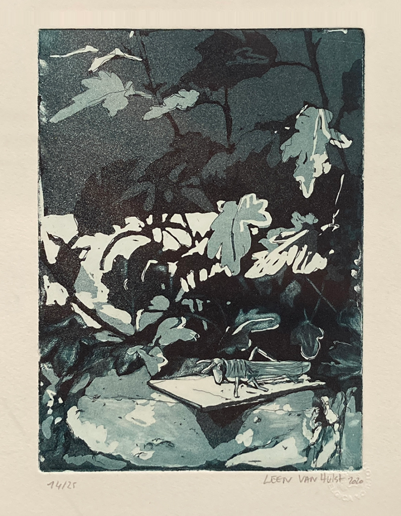 Leen: je wordt enorm gemist. Het was bijzonder toen we samen ’s avonds op de academie in Berchem grafiek maakten. En daarna, toevallig, in dezelfde straat in Borgerhout woonden. Het was heel fijn om al jouw werk in Brussel te zien.